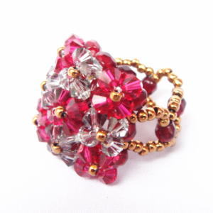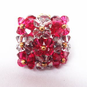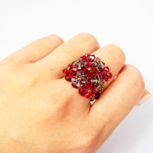 秋らしいルビー×グレーの色合いのリングはボリュームもあり中指にはめるとバランスよく、存在感も抜群!!肌に当たる部分はすべてチェコ製のガラスなので着け心地も良いですよ★