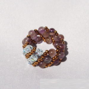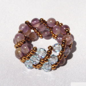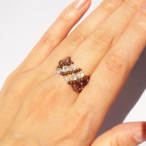 天然石<アメジスト>とスワロフスキー、ビーズが流れるように編み上げたこちらのリングは高級感たっぷり・・・