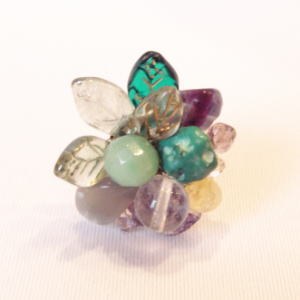 こちらはグリーン系のターコイズをポイントに水晶・アマゾナイトとチェコ製のガラスのリーフで動きを出したので存在感抜群☆