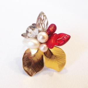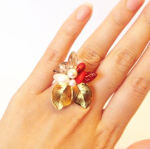 こちらはゴールドのリーフで思いっきり動きを出し、ゴールドととっても相性の良いレッドとホワイトのパーツを合わせて作りました♪