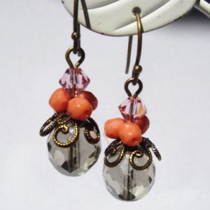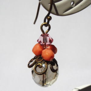 カットのあるクリアの淡いグレーのチェコガラスをポイントにしてピンクのチェコとスワロフスキーを合わせたピアス♪