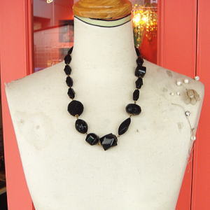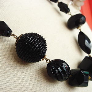 アンティークゴールドの金具で高級感ある雰囲気にまとめてみました。ひとつひとつのパーツはボリュームがあるのに、パーツ間の空きが、重くなりがちな黒をすっきりと仕上げています。
