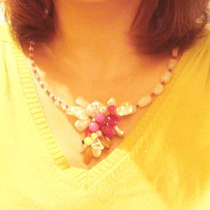 天然石ワイヤー編みネックレス☆ピンク☆