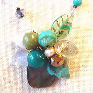 ネック部分はさざれ石を使用し軽いですが動きはあり、ところどころシルバーのパーツを入れているので肌も明るく見えます☆