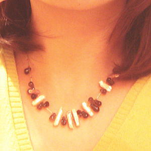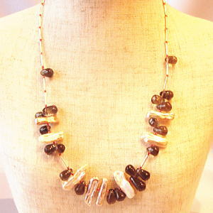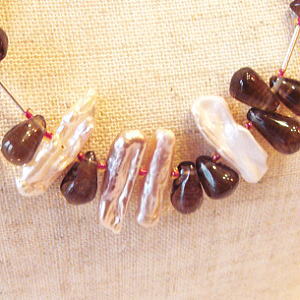形に動きのあるスモーキークオーツと淡水パールをパーツを計算されたバランスのとれた位置に配置し出来上がったネックレス☆