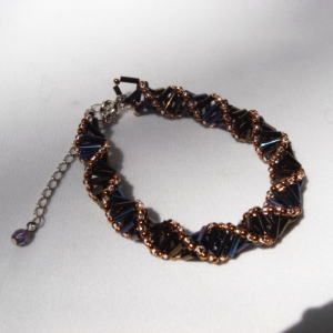 編み方で螺旋を描いているブレスレットは渋谷のSHOPでも大人気!!留め具を外さなくてもくるくるっと腕にはめれちゃいます☆ブレスレットは着けるのに時間がかかって・・・というかたにもおススメ!!ビーズも2色使って作っているので暗くなりすぎず、品よくみえますよ◎