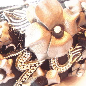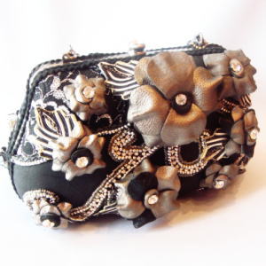 それぞれ大きさの異なるグレーのお花が印象的なバックが入荷しました!!