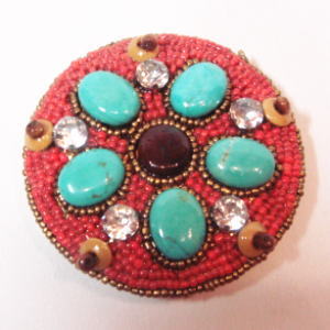 鮮やかな赤のビーズにターコイズ色のパーツの組み合わせはインパクト大!!華やかで品があるMARY FRANCESのコンパクトミラーは、ご自身用にはもちろん、プレゼントにも大人気です!!