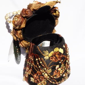 開閉がマグネットタイプなので出し入れも楽々♪ブラック×ブロンズ系なのでこれからのシーズン使えますし、パーティーの主役になれること間違いなしです!!