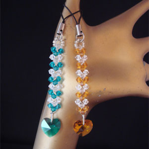 上の部分はハートになるように編み、下の部分はハート形にカットされたスワロフスキーを使用しています。揺れるたびキラキラ輝きついついうっとりしちゃいます・・・ショップでは誕生日プレゼントなどプレゼントとしても人気です!!