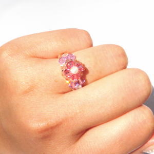 ピンクと淡いパープルの組み合わせが可愛らしいリング。トップにベビーパールを持ってきたのでカジュアルになりすぎず、お友達と会うときやデートの時におススメです♪アンシャンテこの夏おススメのリング!!小振りなので指が細い方や普段リングを着けなれない方にもおススメです☆